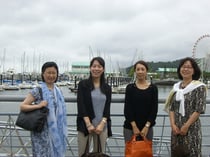 ラグーナのヨットハーバーを望む窓際席から海を眺め